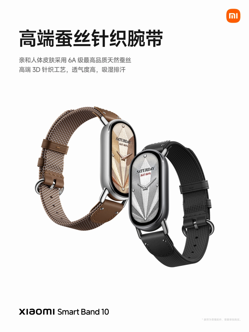 Smart Band 10 получил дисплей диагональю 1,72" с симметричными рамками толщиной 2 мм, яркостью 1500 нит и режимом работы с мокрыми руками. Браслет будет доступен во множестве расцветок, включая несколько вариантов в керамических корпусах. Также у браслета появился новый шёлковый ремешок.