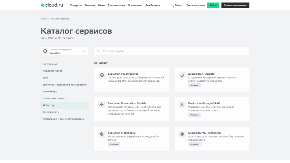 В состав Cloud.ru Evolution AI Factory вошли: