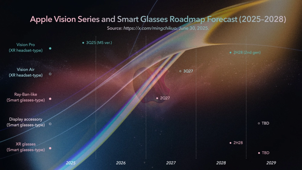 - Vision Pro 2-го поколения (2028) — новый дизайн;