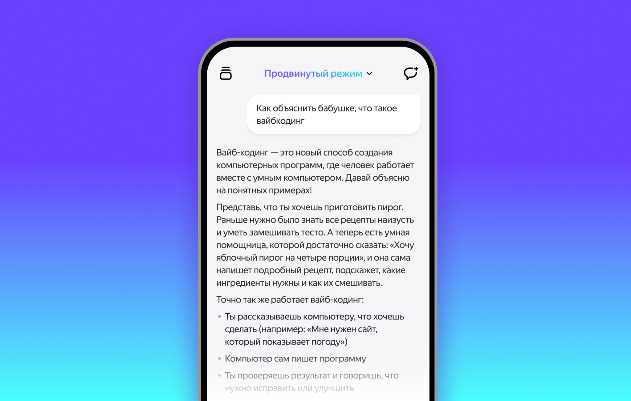 «Это позволяет понять, каким образом нейросеть пришла к своим выводам, и увидеть возможные подходы к проблеме. Режим рассуждений полезен при решении сложных многосоставных задач — например, когда нужно составить бизнес-план или оценить инвестиционный проект. А если требуется сравнить данные, можно попросить „Алису“ представить ответ в виде таблицы»— пресс-служба «Яндекса»