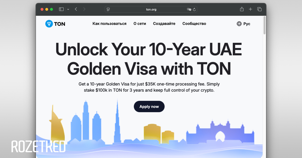 Интегрированный в Telegram блокчейн TON объявил о партнёрстве с правительством Арабских Эмиратов. TON предлагает упрощённое получение золотой визы сроком на 10 лет, если заблокировать в стейкинге 100 тысяч долларов в монете TON на 3 года и заплатить 35 тысяч долларов единовременного сбора за обработку. Резидентство будет распространяться на несколько членов семьи, включая родителей, детей и супруга/супругу.