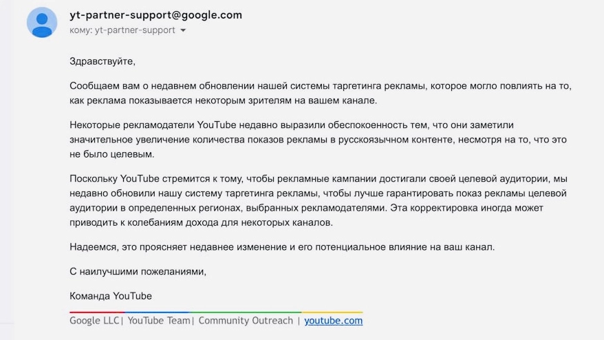 Платформа, по всей видимости, научилась определять регион пользователя по совокупности признаков: языку системы, региону аккаунта, платёжной информации и активности в сервисах Google. В результате зрители из России исключаются из рекламной модели YouTube, а авторам не начисляется доход за их просмотры.