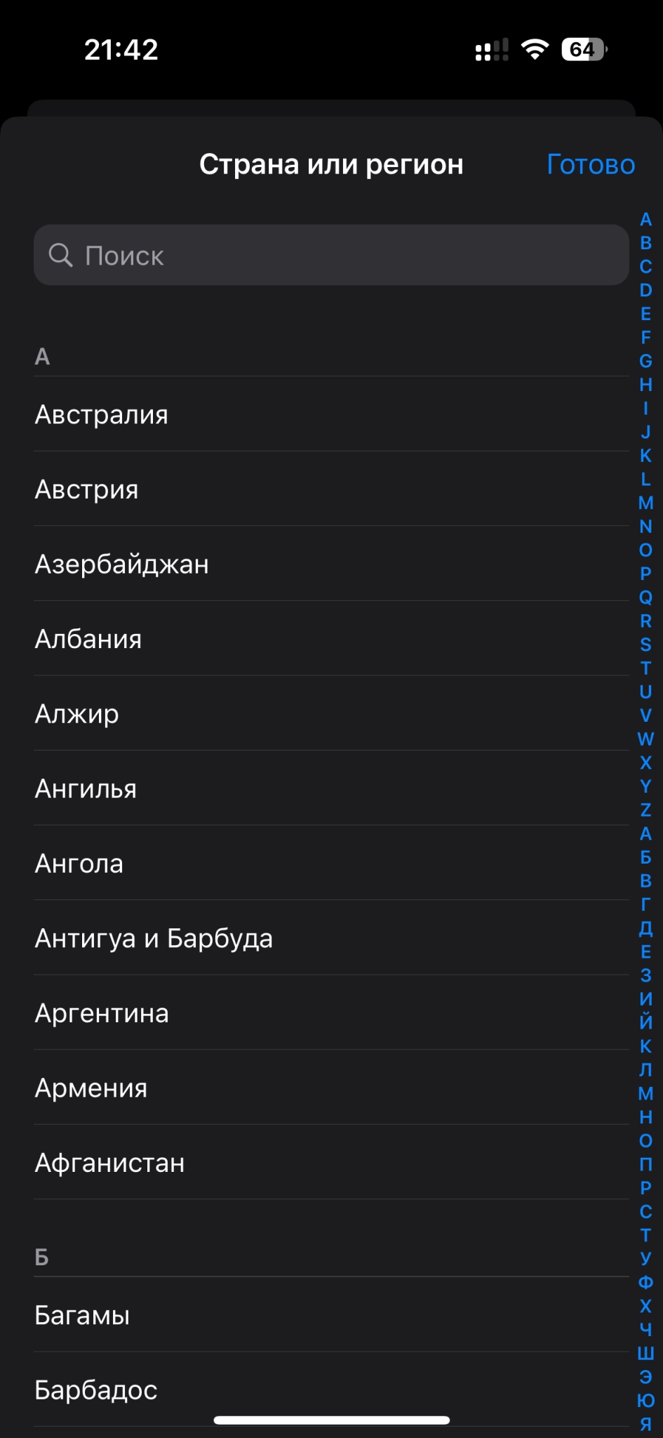 - Выбрать в разделе «Страна/регион» нужную страну (например, США).