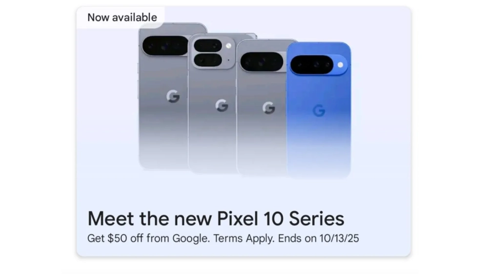 В Android Headlines также обнаружили, что сама Google случайно оставила баннеры Pixel 10, 10 Pro, 10 Pro XL и 10 Pro Fold в Google Play на Android. На изображении можно увидеть флагманские Pixel 10 Pro в цвете Moonstone, а базовый Pixel 10 — в ярком синем цвете.