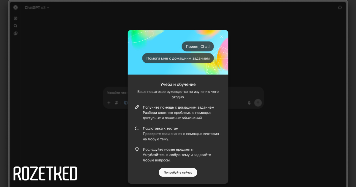 Включить и выключить «Учёбу и обучение» можно в любой момент разговора с ChatGPT. Доступ к новому режиму получат все пользователи — в том числе и те, у которых нет никакой подписки.