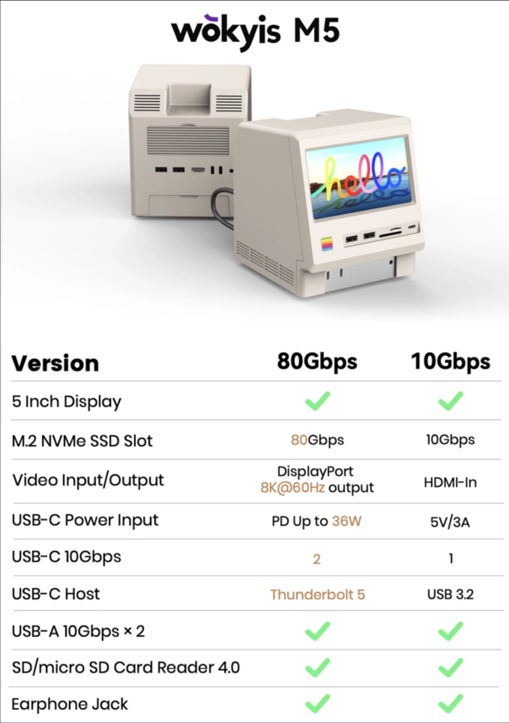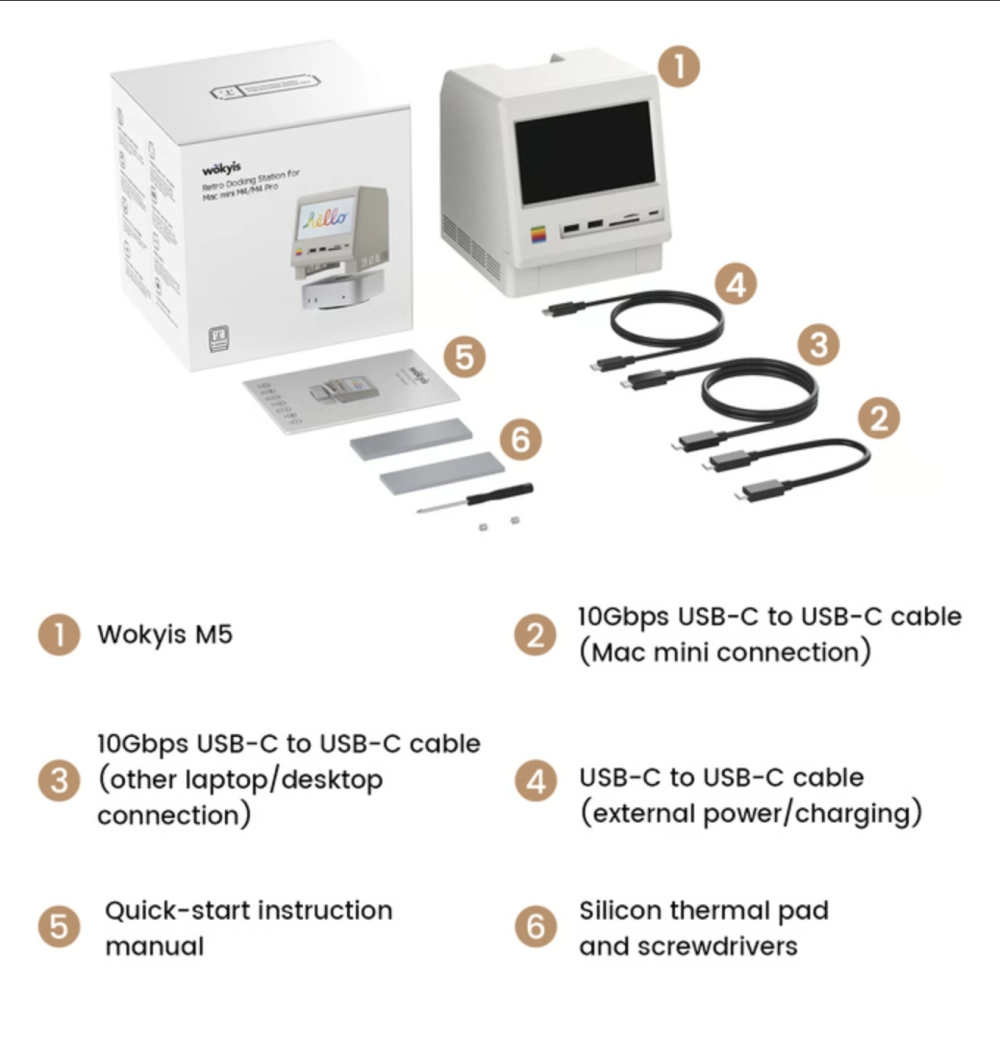 Wokyis M5 представляет собой «док-станцию 14-в-1». Помимо дизайна в стиле первого Mac, устройство также предлагает: