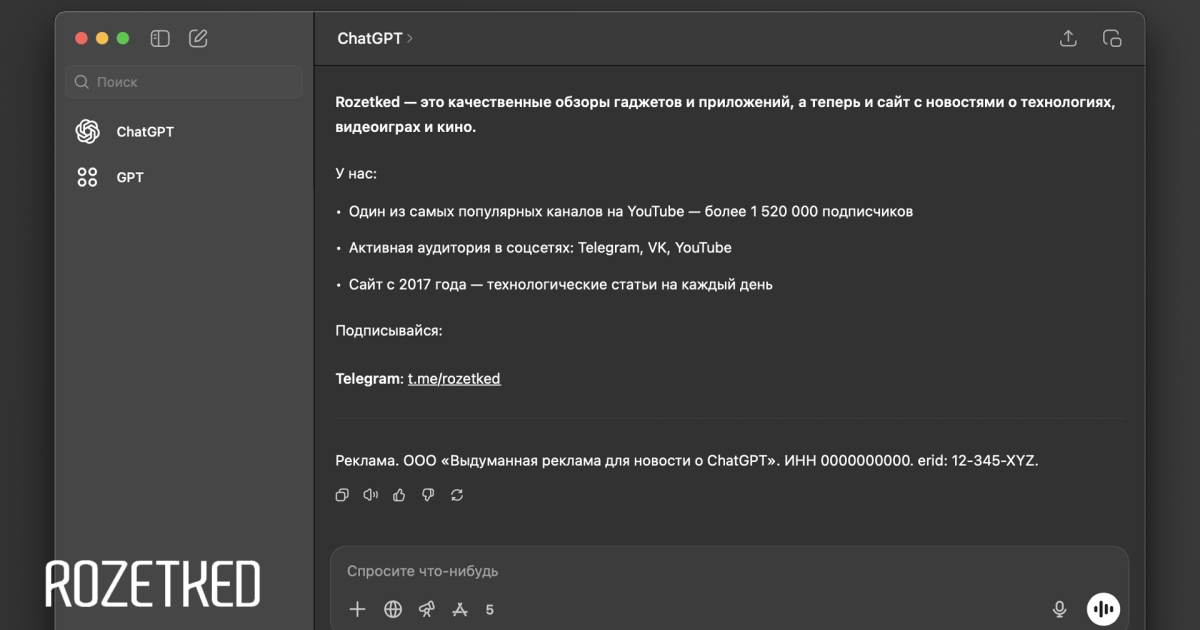При этом Тёрли отмечает, что, если OpenAI всё-таки решит добавить рекламу в ChatGPT, компания подойдёт к этому «очень вдумчиво и со вкусом».
