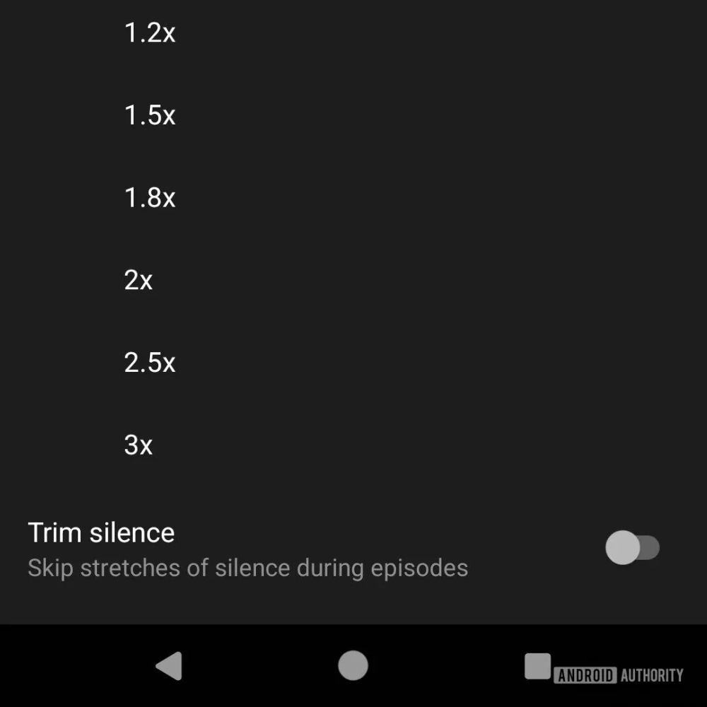 Активировать функцию Trim Silence можно в меню выбора скорости воспроизведения подкаста: