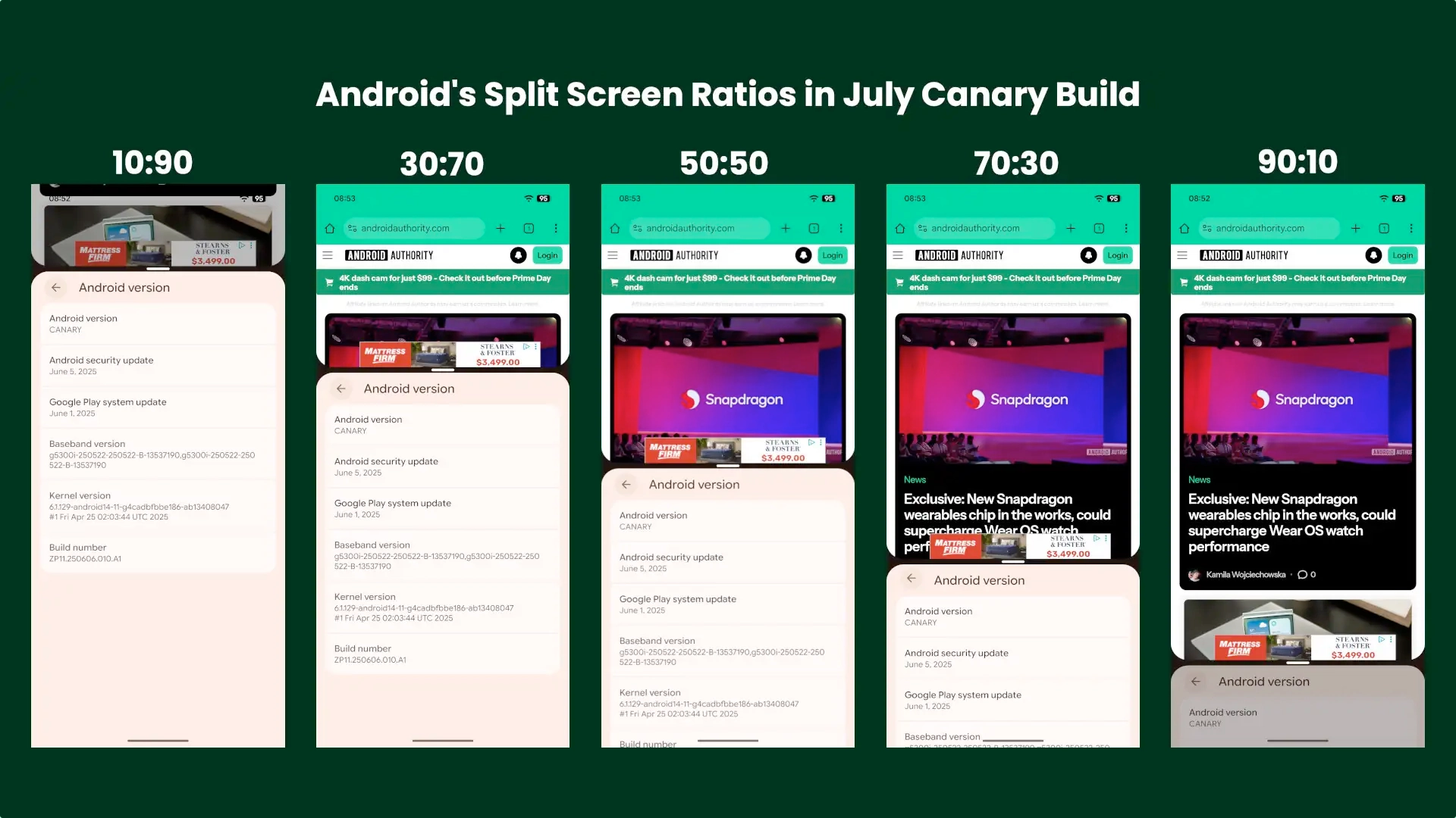 Сплитскрин 90:10. Google подсмотрела у Oppo и OnePlus фишку с разделением экрана: приложение, в котором вы работаете, занимает 90% экрана, а второе, неактивное — 10%. Таким образом можно быстро переключаться между двумя окнами, при этом почти не терять полезную площадь экрана.