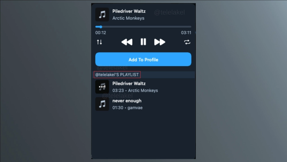 - Чтобы добавить музыку в профиль, нужно выбрать трек в чате (например, в «Избранном»), включить воспроизведение и нажать кнопку Add To Profile.