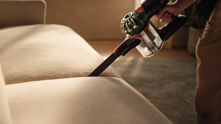 В комплекте идёт несколько насадок: мягкая роликовая чистящая головка для твёрдых полов, моторизованная щётка для матрасов и щелевая насадка для уборки узких мест. V8 Cyclone поддерживает три режима очистки для работы с различными типами загрязнений и поверхностей.