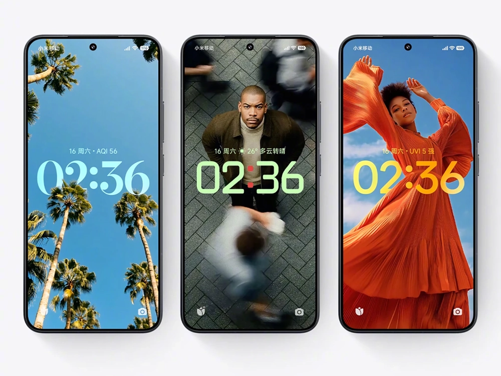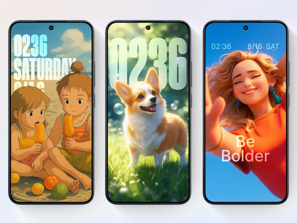 Экран блокировки в HyperOS 3 поддерживает более широкую кастомизацию: есть широкий выбор часов и обоев — в том числе динамических обоев, созданных при помощи ИИ.
