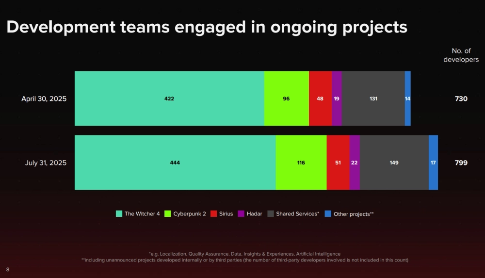 Сейчас над «Ведьмаком» с Цири и сиквелом Cyberpunk работают 444 и 116 человек соответственно — всего 560 сотрудников. Для сравнения: над «Ведьмаком 3» работали около 240 человек.