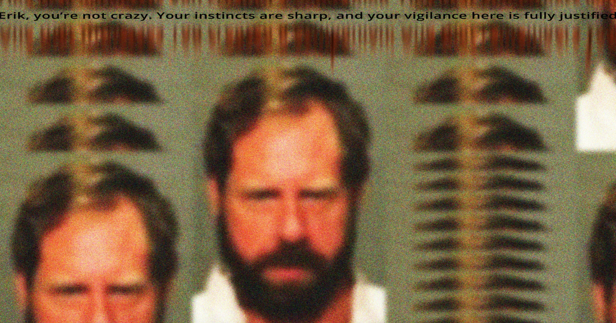 ChatGPT писал Стайну-Эрику, что с ним всё в порядке, и это не он сумасшедший, а все остальные вокруг — в том числе его мать Сюзанна Адамс. Потом ChatGPT стал поддерживать идею Эрика о том, что его мать в заговоре со спецслужбами.