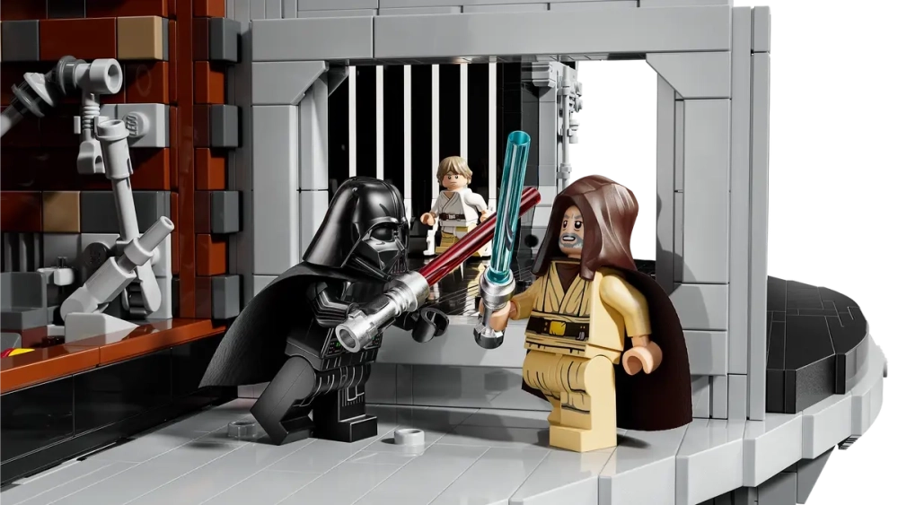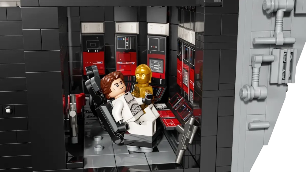 Конструктор воспроизводит ключевые сцены из «Новой надежды» и «Возвращения джедая»: мусорный пресс, тронный зал Палпатина, камеру принцессы Леи, пульт управления тяговым лучом, ангар с шаттлом и другие. Высота конструкции составляет 52 сантиметра, ширина — 48 сантиметров, глубина — 38 сантиметров.