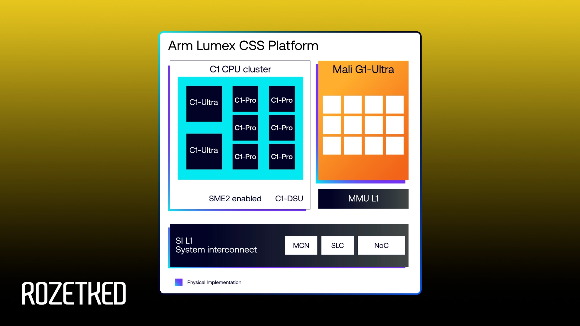 В новую серию вошли четыре CPU-ядра: C1-Ultra, C1-Premium, C1-Pro и C1-Nano, а также графика Mali G1-Ultra. Все решения основаны на архитектуре ARMv9.3-A и поддерживают набор команд SME2, который ускоряет выполнение ИИ-задач до пяти раз без увеличения энергопотребления.