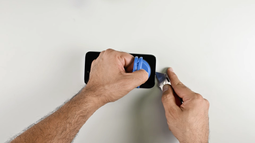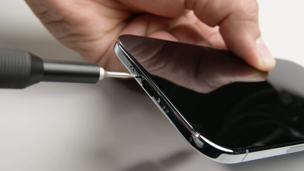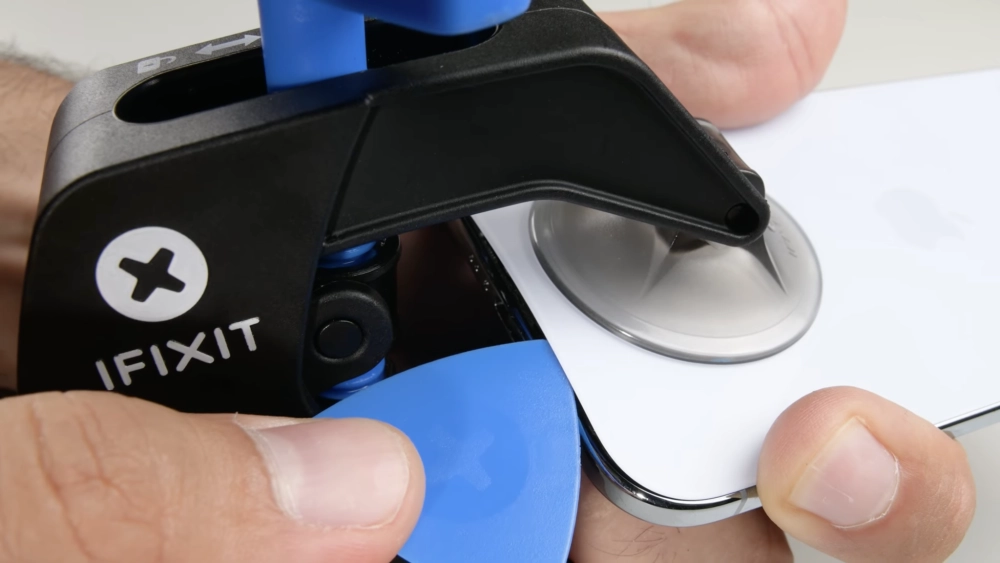 Задняя панель iPhone Air снимается, как и раньше, просто — нужно открутить два винта возле порта USB-C, нагреть стекло и снять его при помощи вакуумной присоски и медиатора.