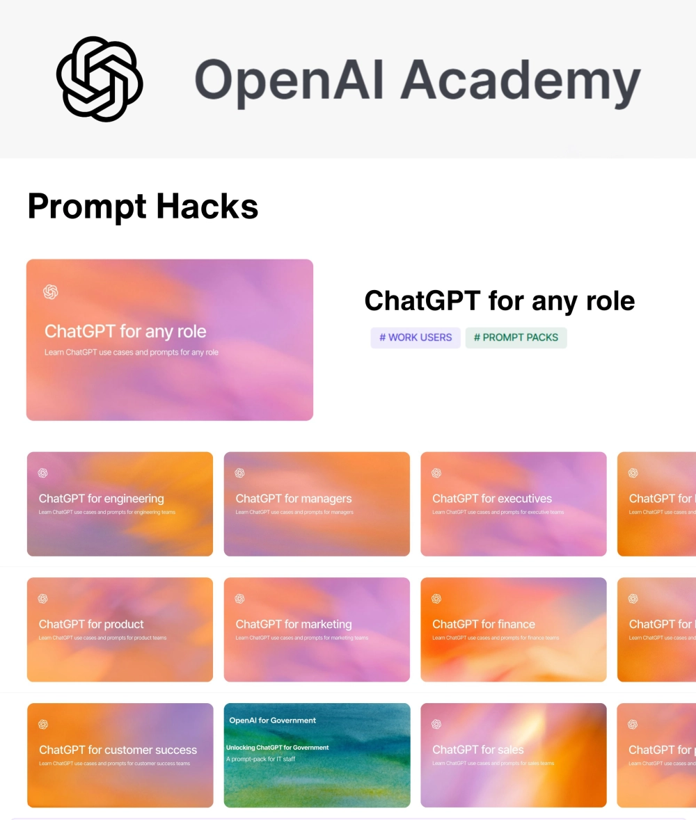 Все материалы собраны в разделе Prompt Packs на сайте OpenAI Academy. Компания отмечает, что такие шаблоны помогают ускорить выполнение рутинных задач и лучше встроить ChatGPT в повседневную работу специалистов.