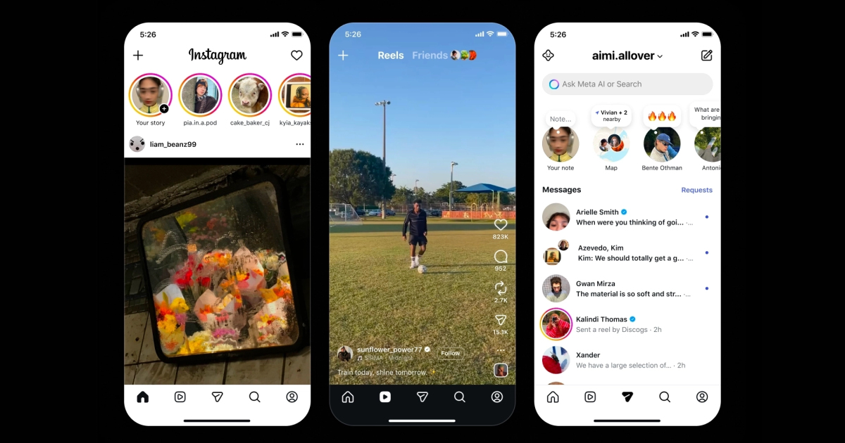 Instagram* начал ограниченное тестирование нового дизайна в Индии и Южной Корее. В обновлённом интерфейсе первым при запуске приложения открывается раздел Reels, а Stories остаются в верхней части экрана. Кнопка сообщений перенесена в центр нижней панели, а вкладка Following расположена рядом с Reels.