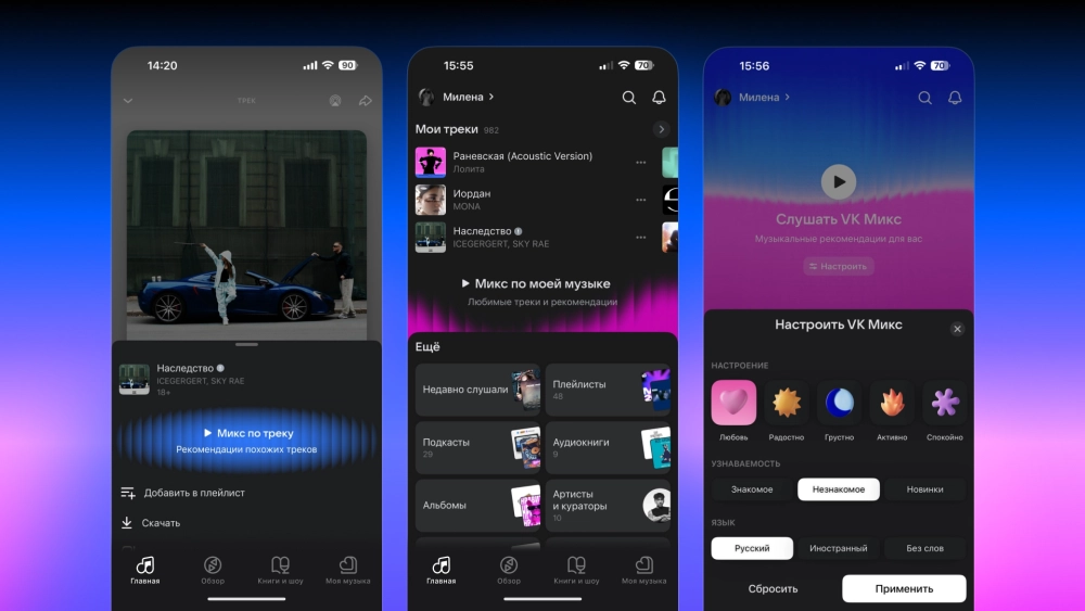 Количество предлагаемых новинок в рекомендациях увеличилось в 14 раз — новые треки от артистов появляются в «VK Миксе» в течение одного часа.