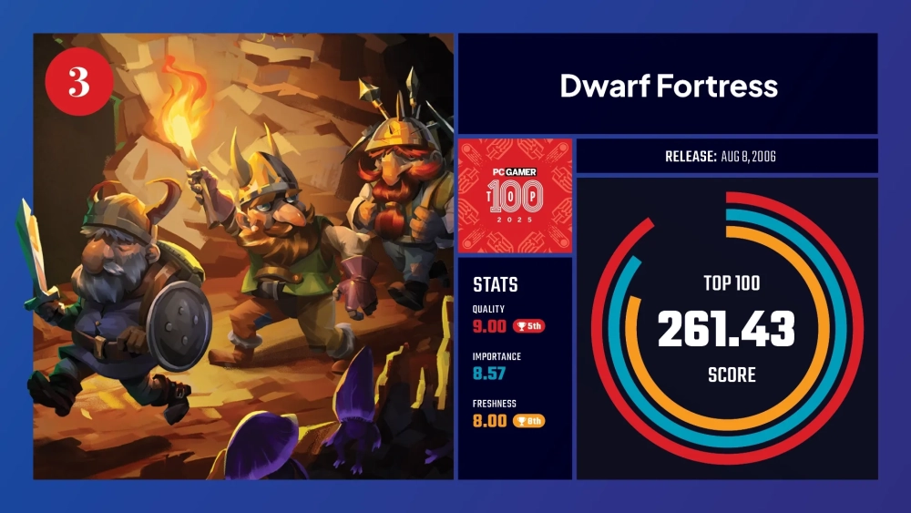 Первое место заняла Baldur’s Gate 3 от Larian Studios — редакция назвала её «лучшей фэнтезийной ролевой игрой всех времён». На второй позиции оказалась Disco Elysium — The Final Cut, а замыкает тройку лидеров Dwarf Fortress. В десятку также вошли «Ведьмак 3», Crusader Kings III, Stardew Valley, Caves of Qud, Balatro, Elden Ring и Red Dead Redemption 2.