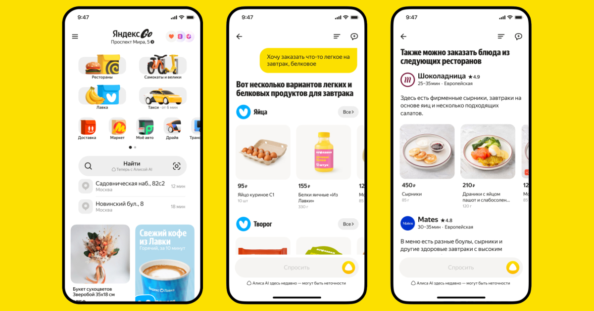 «Например, нейросети можно написать запрос: „Хочу на ужин что-то с рыбой, не жареное, до 700 калорий“. „Алиса AI“ призовёт ИИ-агентов „Еды“ и „Лавки“ и они предложат разные варианты: рецепт блюда и продукты для него, готовую еду, которую можно заказать, и рестораны, где есть подходящие позиции в меню»