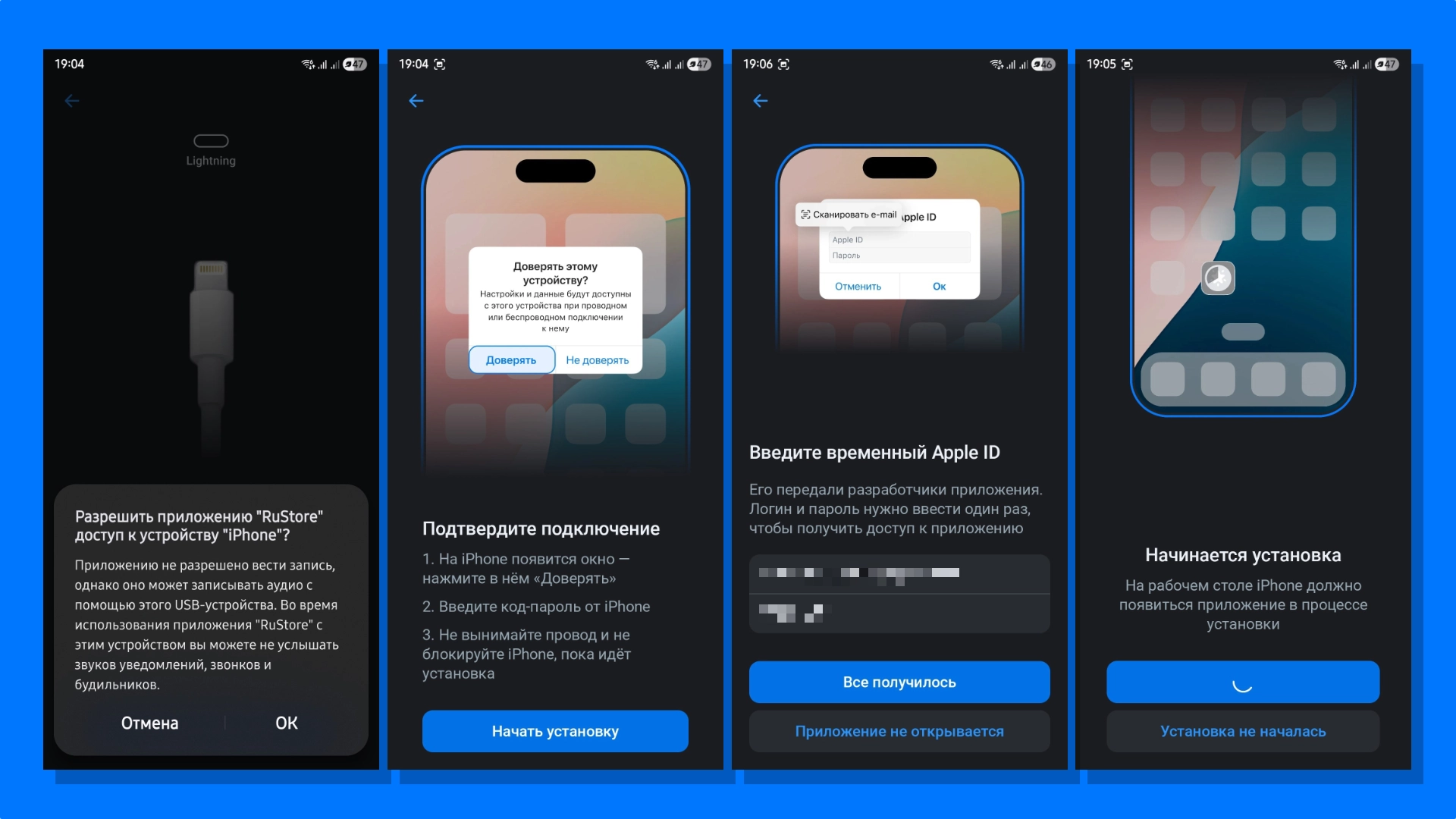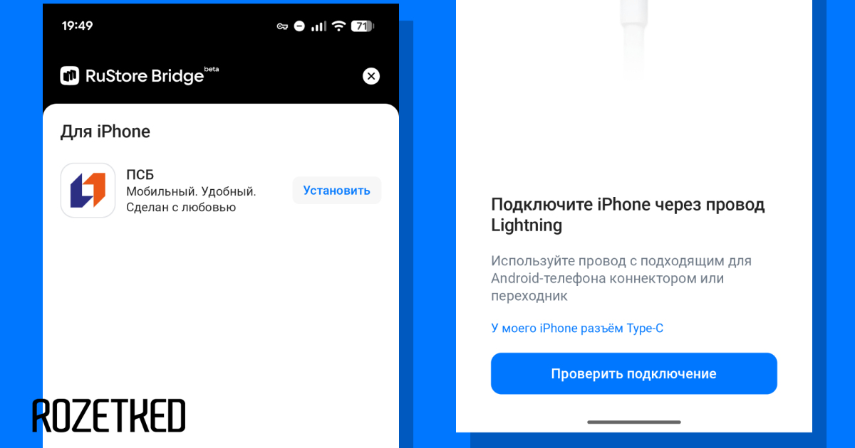 По словам автора канала, в модифицированной версии RuStore для Android есть функция RuStore Bridge. Для установки приложения на iPhone необходим Android-смартфон, который нужно подключить к iPhone при помощи провода.