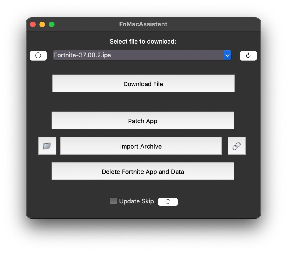 - Вернуться в FnMacAssistant и нажать кнопку Patch App — это исправит embedded.mobileprovision в /Applications/Fortnite.app/Wrapper/FortniteClient-IOS-Shipping.app и удалит старое приложение, если оно существует.