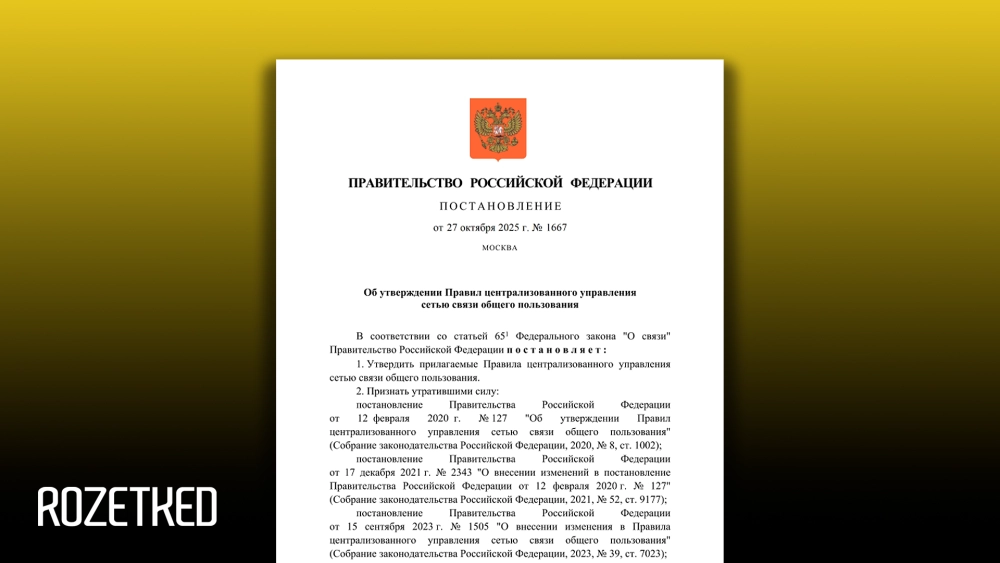 Правительство РФ утвердило «Правила централизованного управления сетью связи общего пользования», которые описывают механизм реагирования на угрозы в Рунете. Постановление №1667 от 27.10.2025 опубликовано на официальном портале правовых актов.