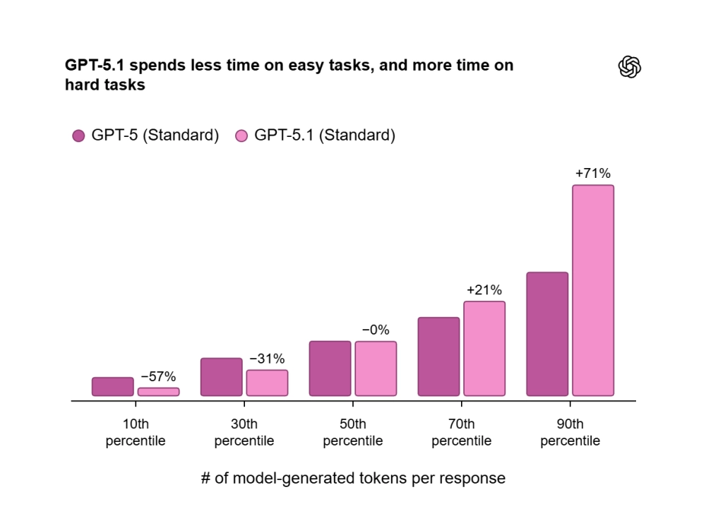 GPT-5.1 Thinking (продвинутая модель для рассуждений) стала быстрее на простых запросах и «упорнее» на сложных, а её ответы — чётче и с меньшим количеством профессионализмов и жаргона.