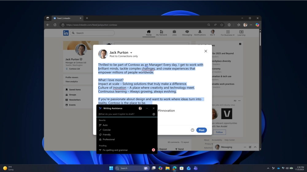 Microsoft анонсировала ряд новых ИИ-функций, которые планируют добавить в Windows 11 в начале 2026 года. Часть из них будет доступна только на Copilot+PC, но другие появятся и на обычных устройствах с Windows 11.