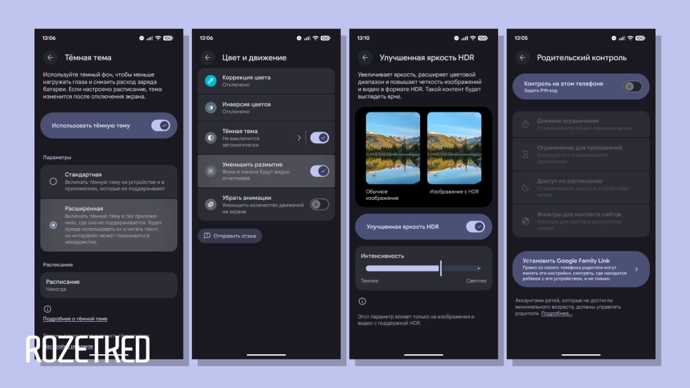 - В Android появился встроенный механизм родительского контроля. Родители могут настраивать лимиты для экранного времени, автоматически блокировать смартфон в определённое время, ограничивать время работы отдельных приложений и включать фильтры веб-контента. Настройки защищены PIN-кодом.