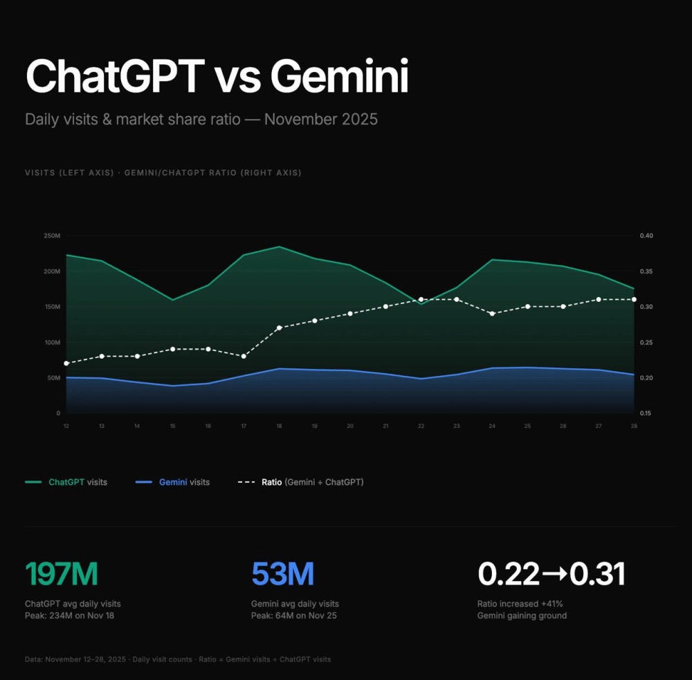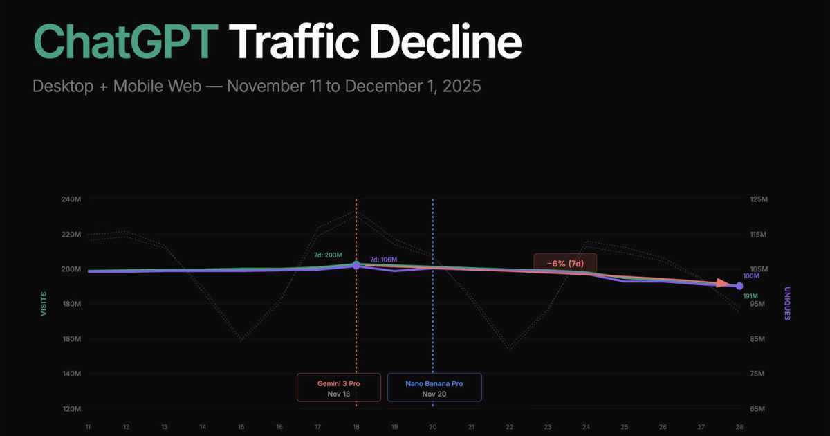 «Это едва ли не первая крупная неудача в истории компании <...> Для тех, кому интересно, это определённо как-то связано с Gemini. Это не так просто понять, но за тот же период времени количество пользователей Gemini резко возросло, увеличившись с 22% до 31% трафика ChatGPT за две недели»— пишет @deedydas