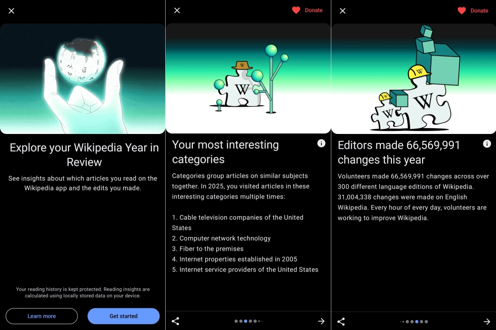 Wikimedia Foundation представила функцию Year in Review («Итоги года») — теперь пользователи энциклопедии могут проанализировать свои читательские привычки.
