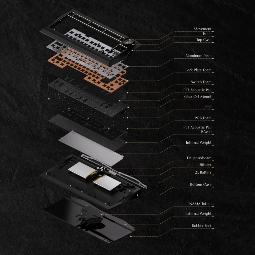 Wuque Studio выпустит беспроводную механическую клавиатуру под названием Nama. Это клавиатура премиум-класса — она весит до 8,6 кг и оснащается часовым механизмом в верхнем правом углу.