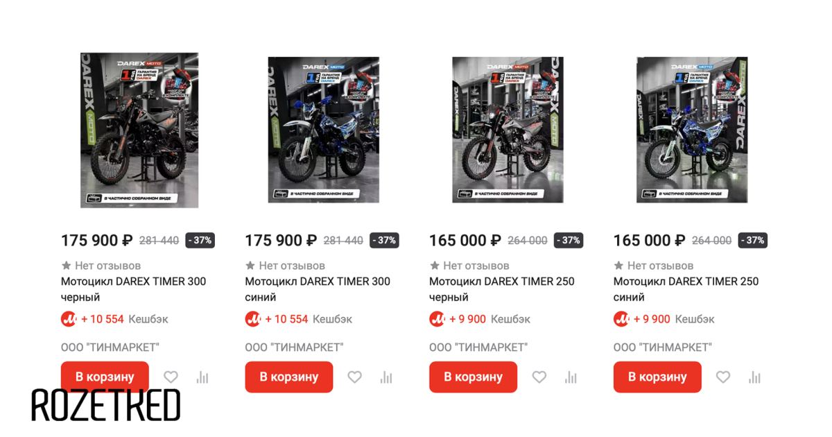 «М.Видео» открыла продажи мотоциклов на собственном маркетплейсе — о запуске Rozetked рассказали в пресс-службе компании. В каталоге появилась линейка внедорожных Darex Moto Timer в модификациях 250 и 300 см³ и в нескольких цветовых исполнениях — их уже можно купить онлайн с доставкой.