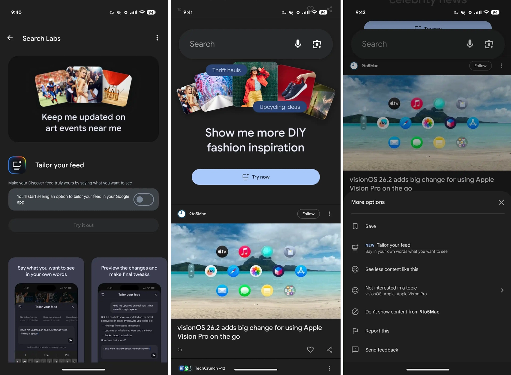 Google тестирует опцию настройки ленты при помощи промптов. Речь идёт о ленте, которая обычно располагается на левом экране Android-смартфона.