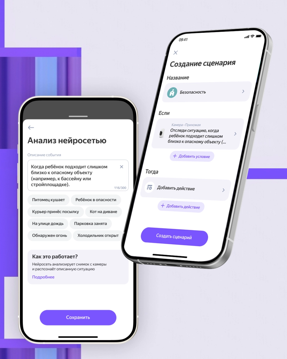 «Раньше сценарии умного дома были привязаны к ограниченному набору сигналов с камеры: шум, движение и человек в кадре. Теперь камера интерпретирует происходящее с помощью ИИ и реагирует на конкретные события. Пользователь может описать условие своими словами — например, „кот запрыгнул на стол“, „собака появилась в комнате“, „ребёнок сел на кровать“ — и привязать к нему сценарий в приложении „Дом с Алисой“»— пресс-служба «Яндекса»