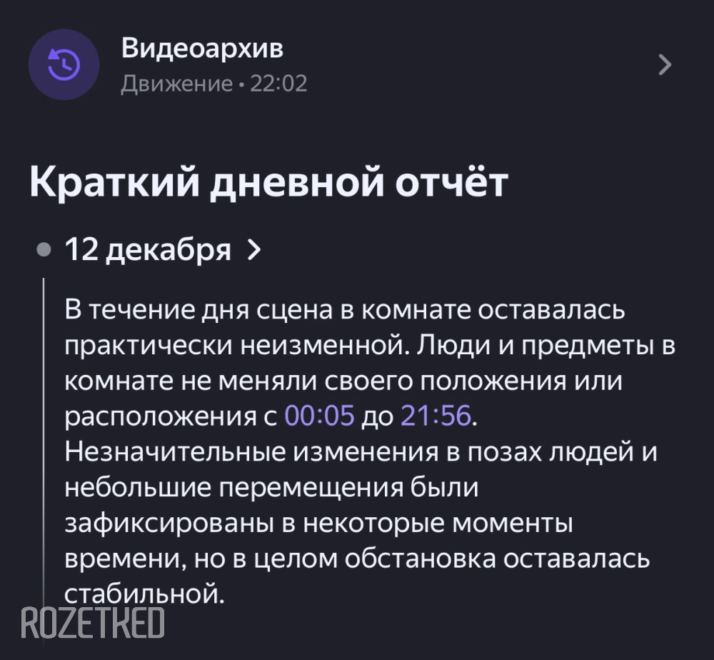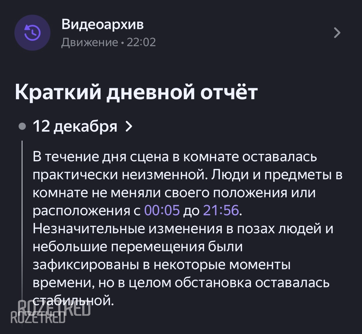 Помимо этого, раз в сутки ИИ суммаризирует всё случившееся за день и отправляет пользователю сводку событий — в приложении «Дом с Алисой».