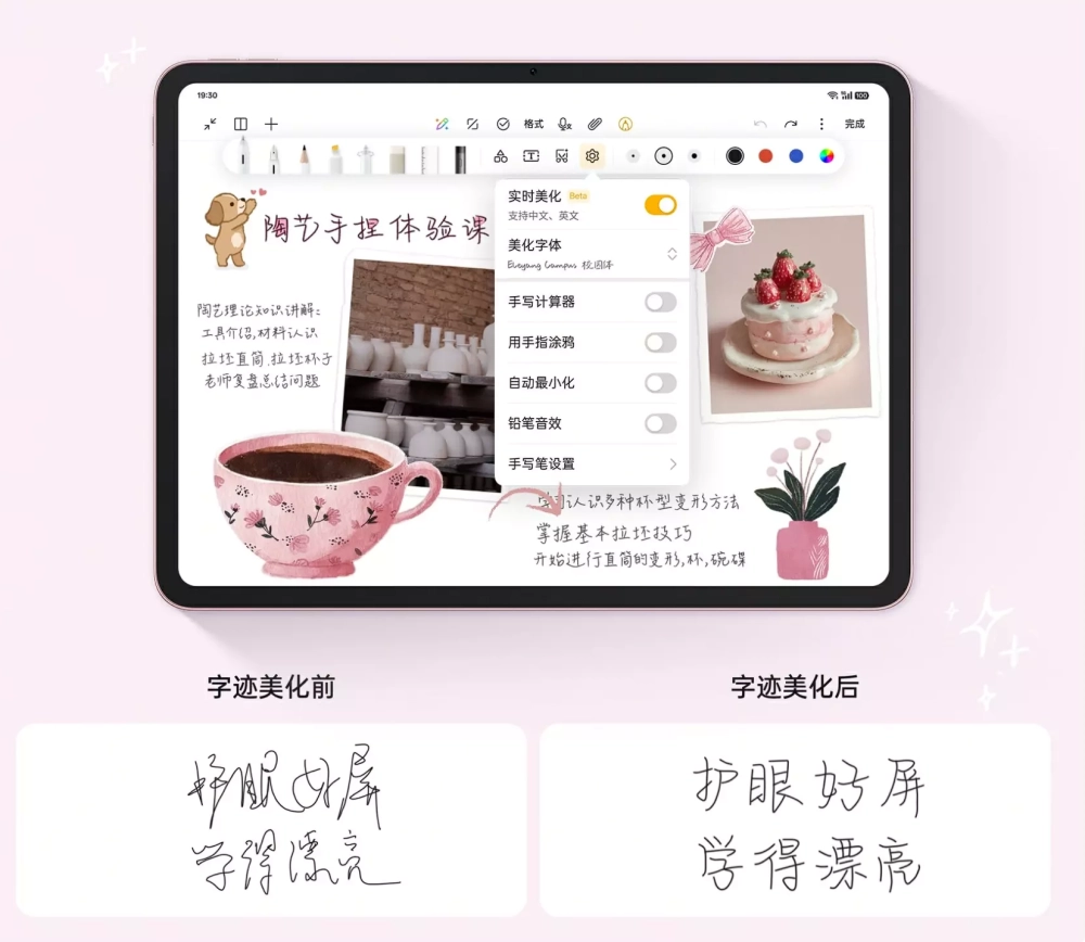 Также говорится об обновлённых приложениях, в частности, заметках, получивших новые функции и улучшенное распознавание рукописного текста: