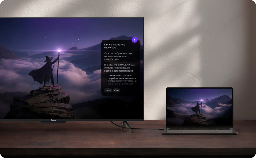 - игровой ассистент теперь доступен и на ПК — достаточно компьютер по HDMI к телевизору, и «Алиса» сможет давать подсказки во время игры;