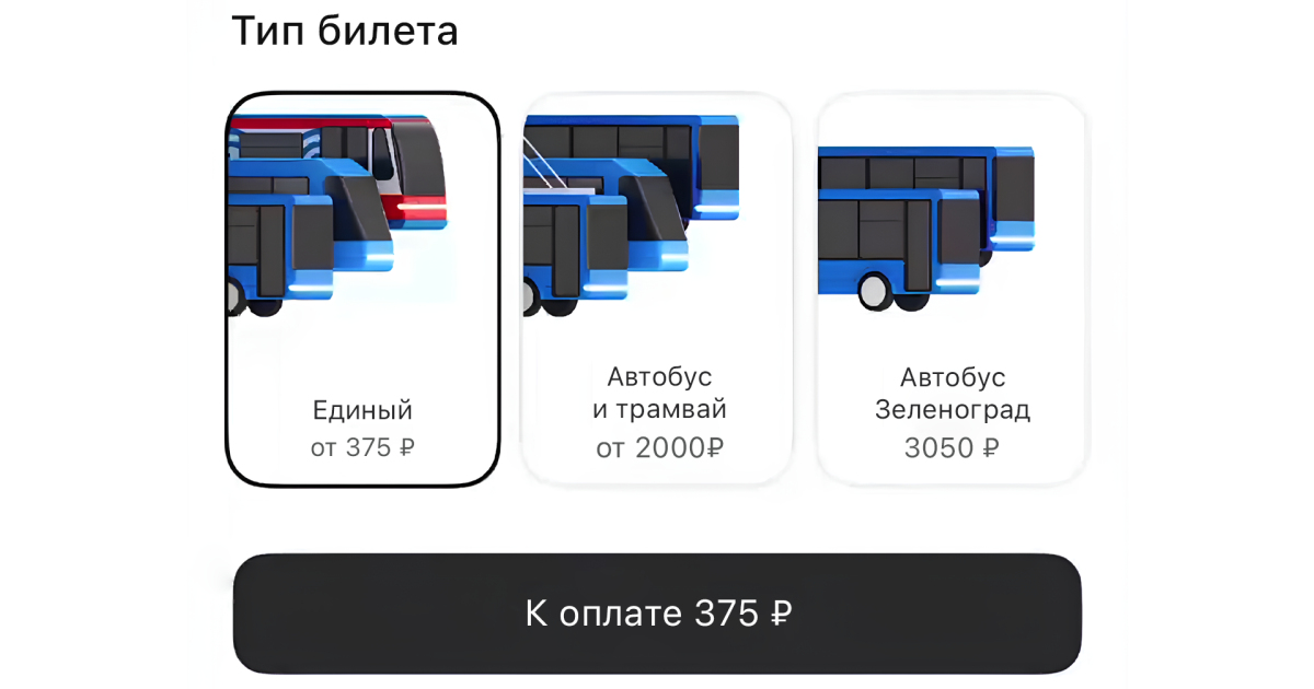 В приложении можно выбрать и оплатить проездной на все виды общественного транспорта — сроком действия от одного дня до года. Проездные будут действовать без ограничения на число поездок.