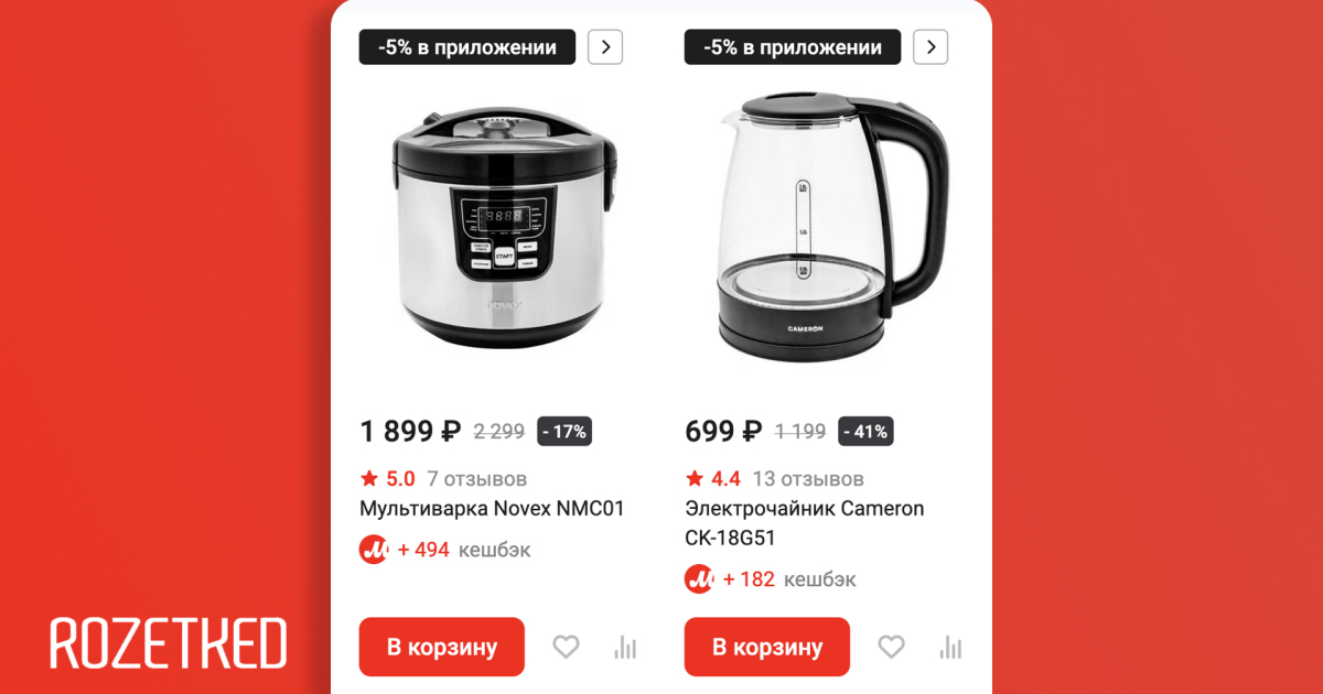 На первом этапе под брендами Novex и Cameron представлены электрочайники и мультиварки: