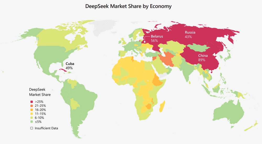 Помимо этого, в Microsoft отдельно подсчитали долю использования DeepSeek: