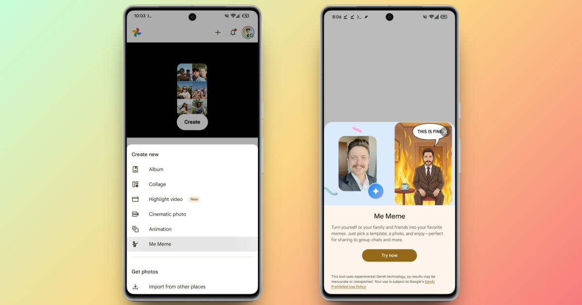 Google анонсировала функцию Me Meme, которая постепенно запускается в приложении «Google Фото» для пользователей в США. Её можно будет найти на вкладке «Творчество».