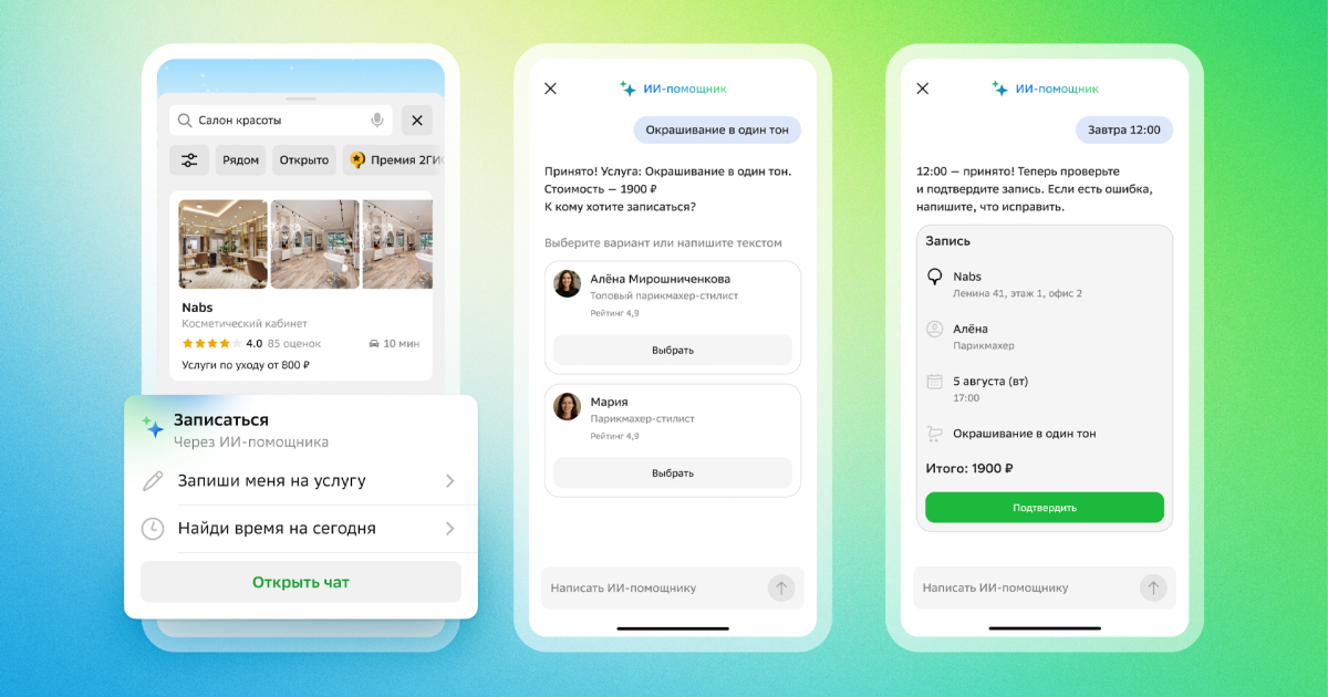 В ближайшие месяцы ИИ-запись на услуги будет доступна всем пользователям приложения на iOS и Android в России — пока попробовать технологию могут только некоторые пользователи iOS. Помимо этого, планируется и расширение спектра услуг для записи — например, появятся автосервисы.