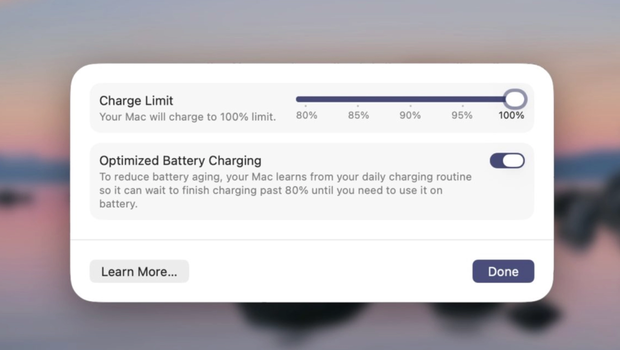 В macOS появилась возможность ограничить максимальный уровень заряда батареи, как на iPhone. Как и в iOS, можно установить лимит на 80–100%.