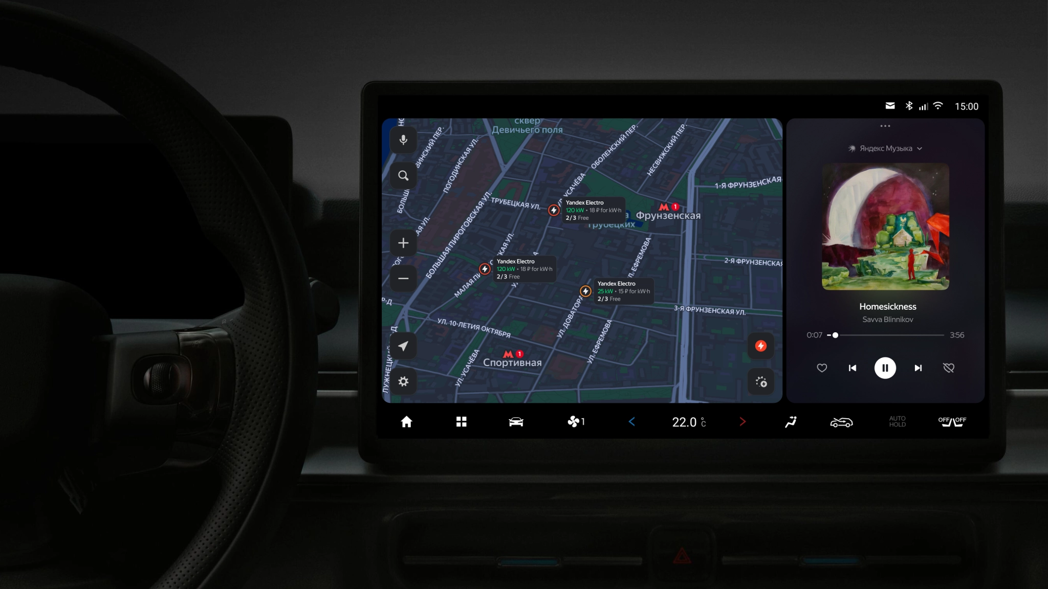 Мультимедийной системой UMO 5 занимается «Яндекс» — для 14,6-дюймового дисплея разработали эксклюзивный интерфейс с доступом к сервисам компании, а также в систему автомобиля интегрировали «Алису» — она может как управлять музыкой и навигацией, так и открывать багажник или окна и прогревать салон.