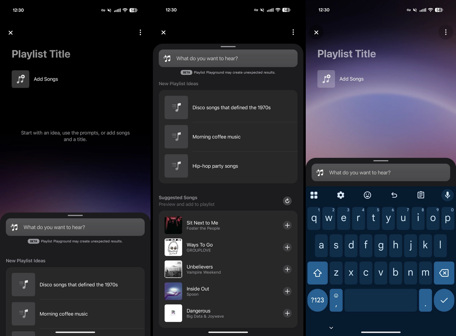 Playlist Playground позволяет при помощи ИИ создавать новые плейлисты на основе промптов. Идеи для плейлистов может предлагать сама нейросеть.