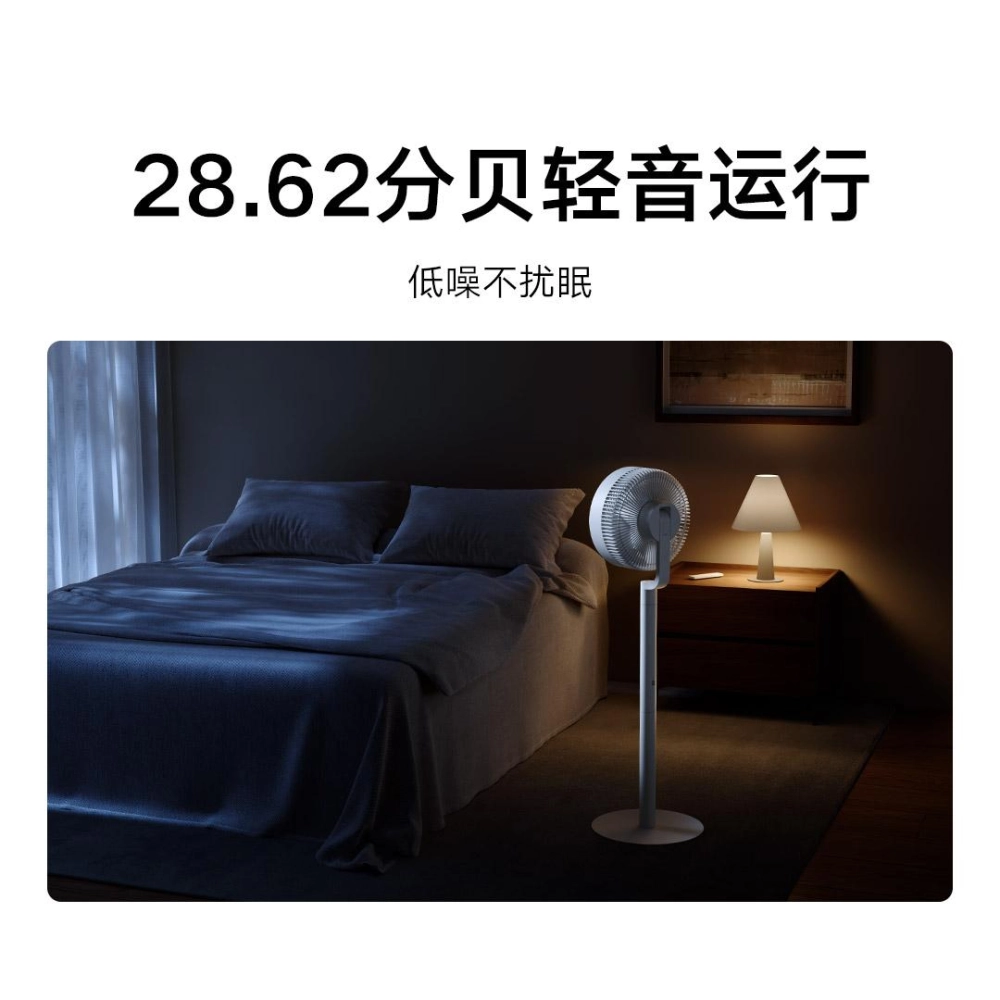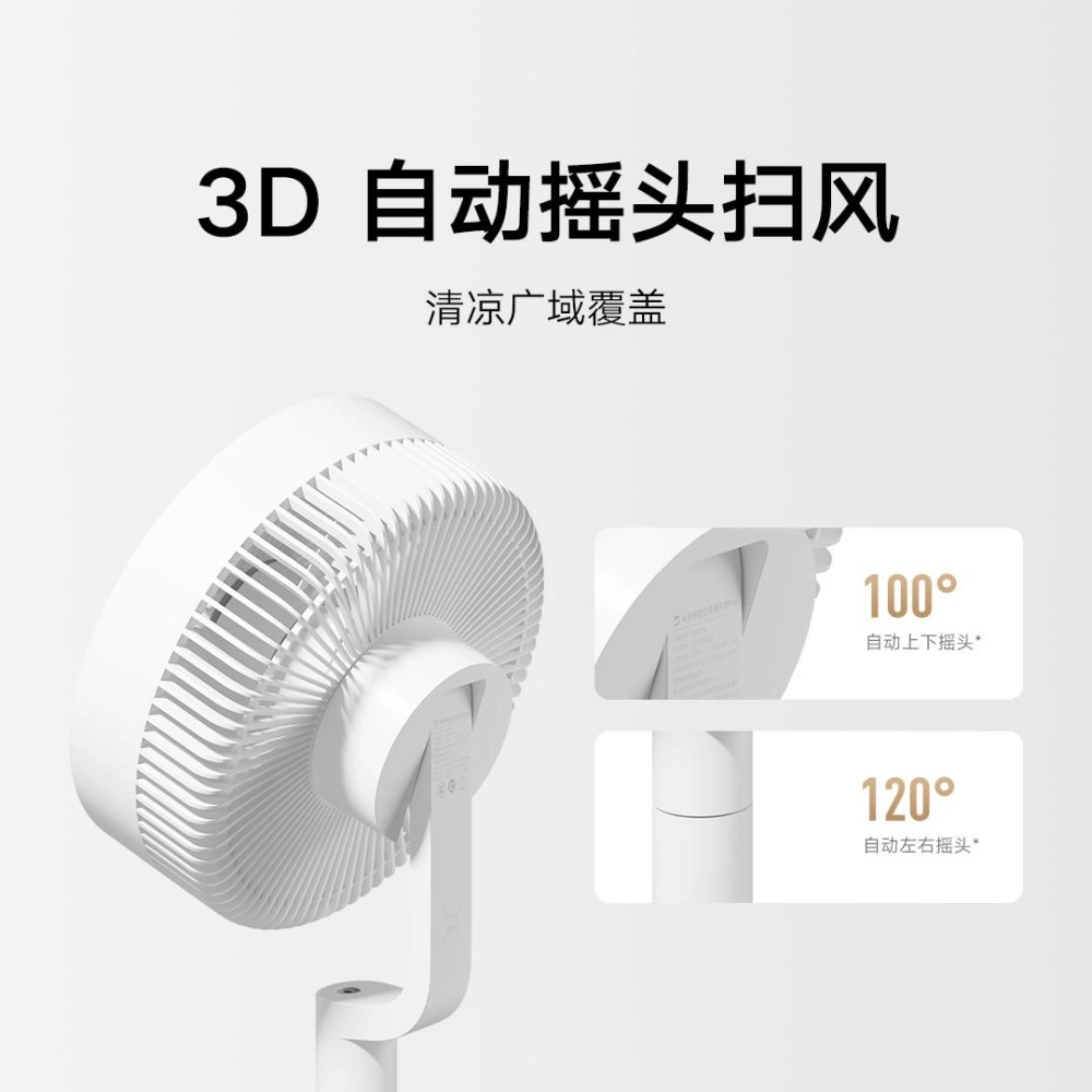 Вентилятор может автоматически поворачиваться на 100° вверх и вниз и на 120° влево и вправо, обеспечивая производительность 28,7 м³/мин. Кроме того, вентилятор можно укоротить и разобрать, чтобы взять с собой в дорогу.
